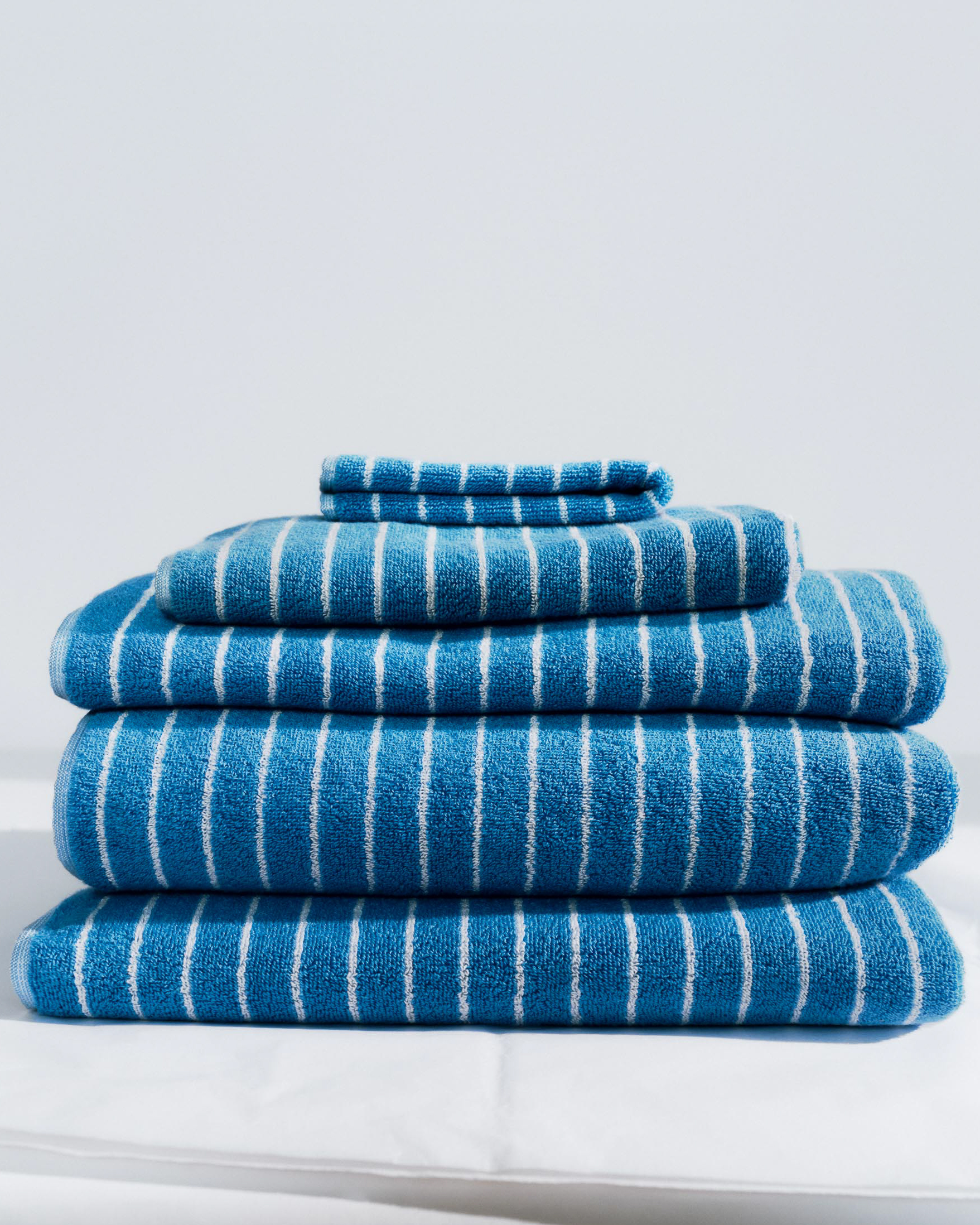 Bleu Ceruleen and Blanc Check cashmere and lambswool blanket