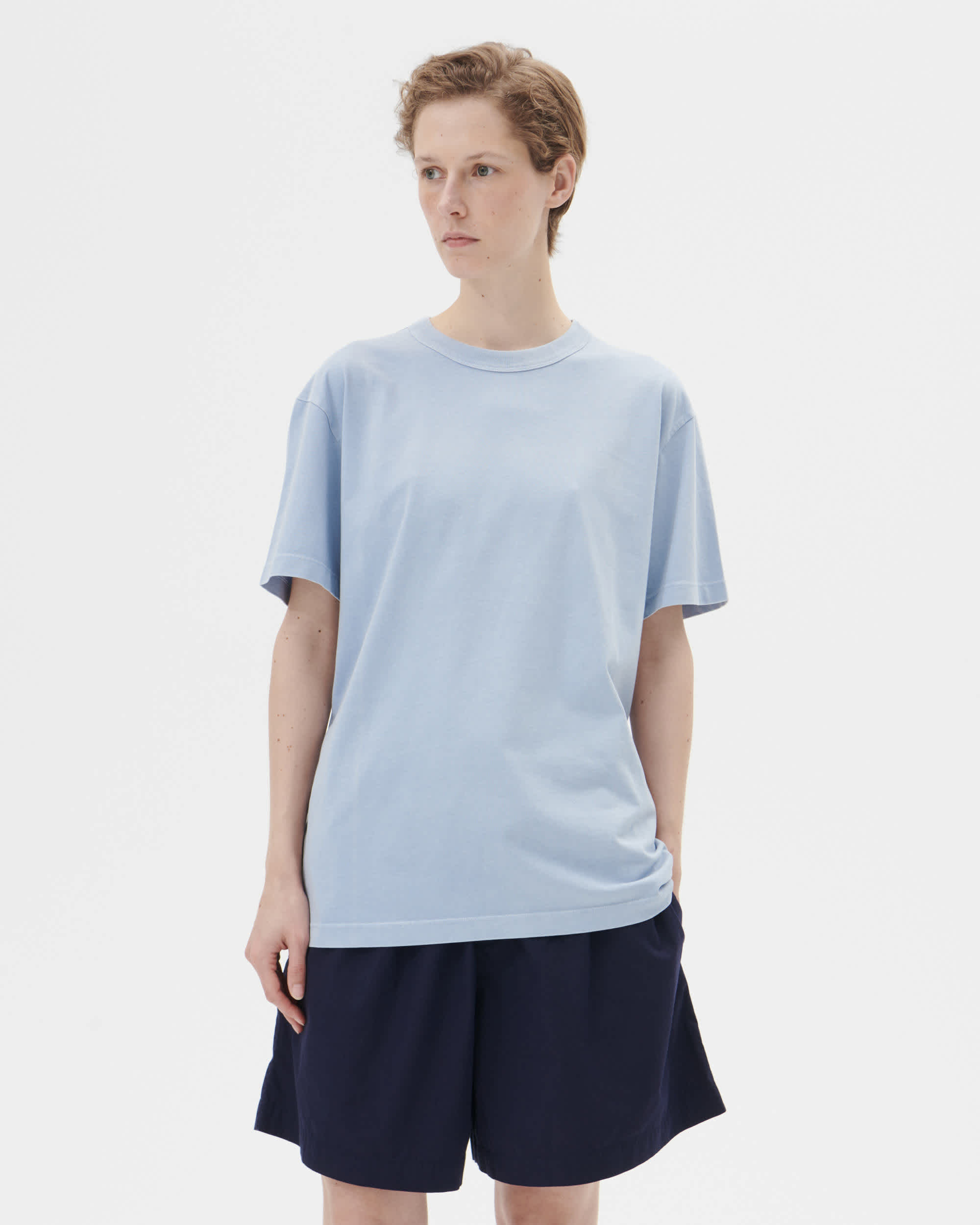 Jersey t-shirts are made for moments of comfort throughout the day and night, suited for sleep or layering under sleepwear shirts. Crafted from 100% organic cotton in a mid-heavyweight knit for an easy drape and smooth finish.