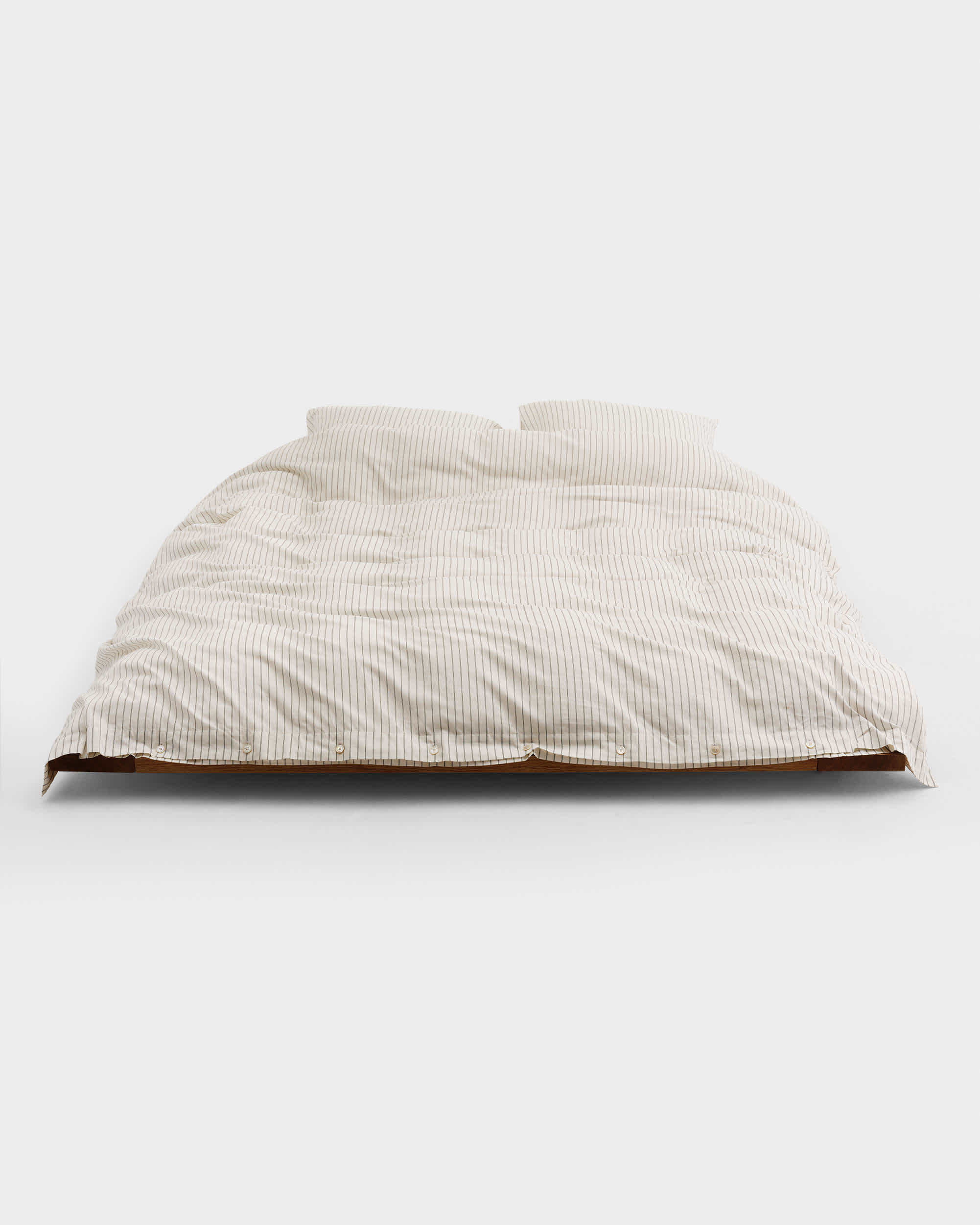The sateen duvet cover is made to elevate the everyday, crafted using soft organic cotton with a lustrous finish. Tightly woven in a heavy thread count for a smooth hand feel, bedding has a comforting weight and gentle fluidity that drapes softly across the body.