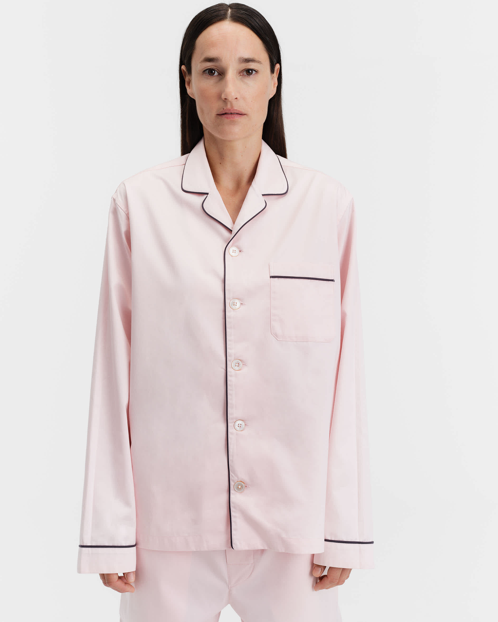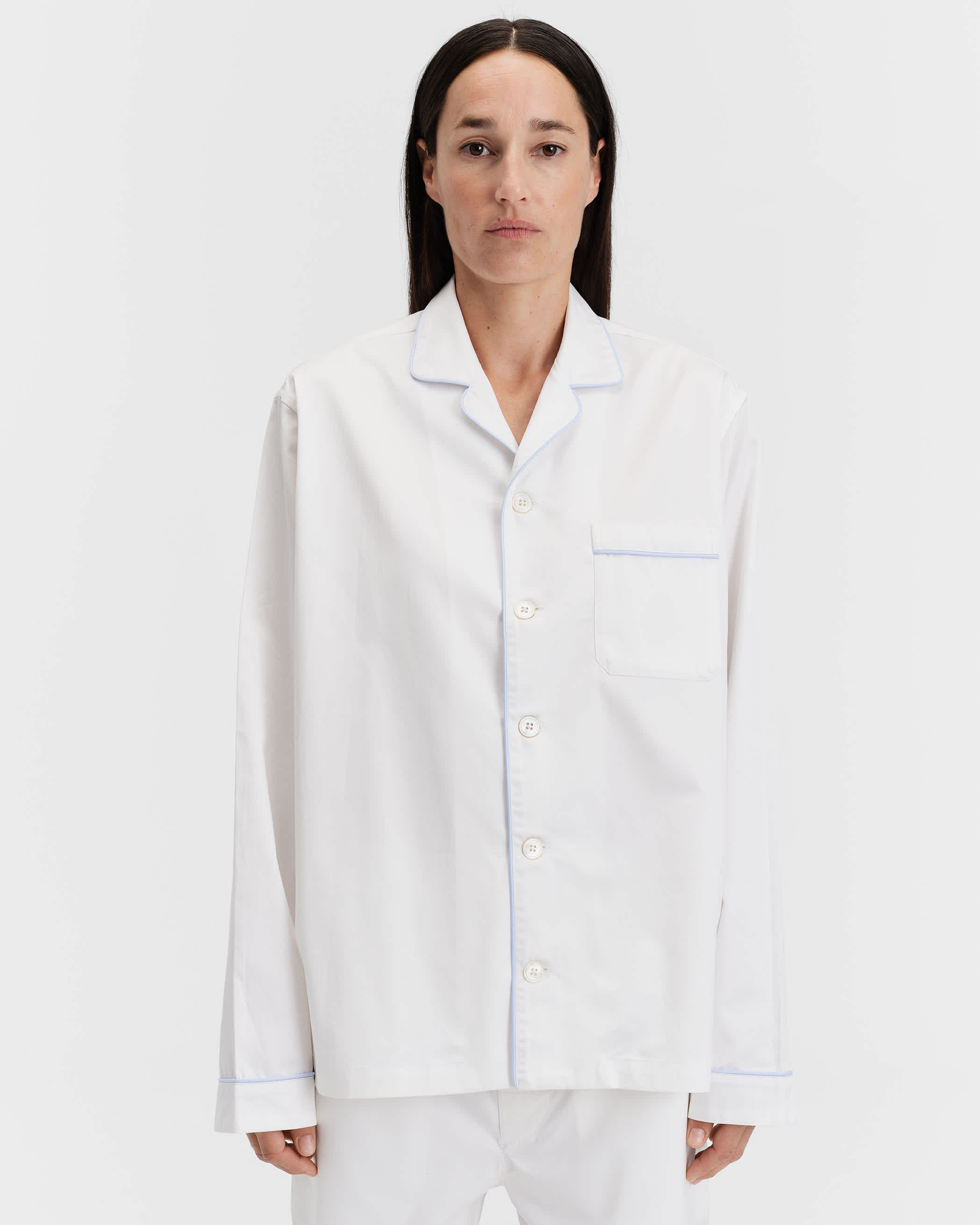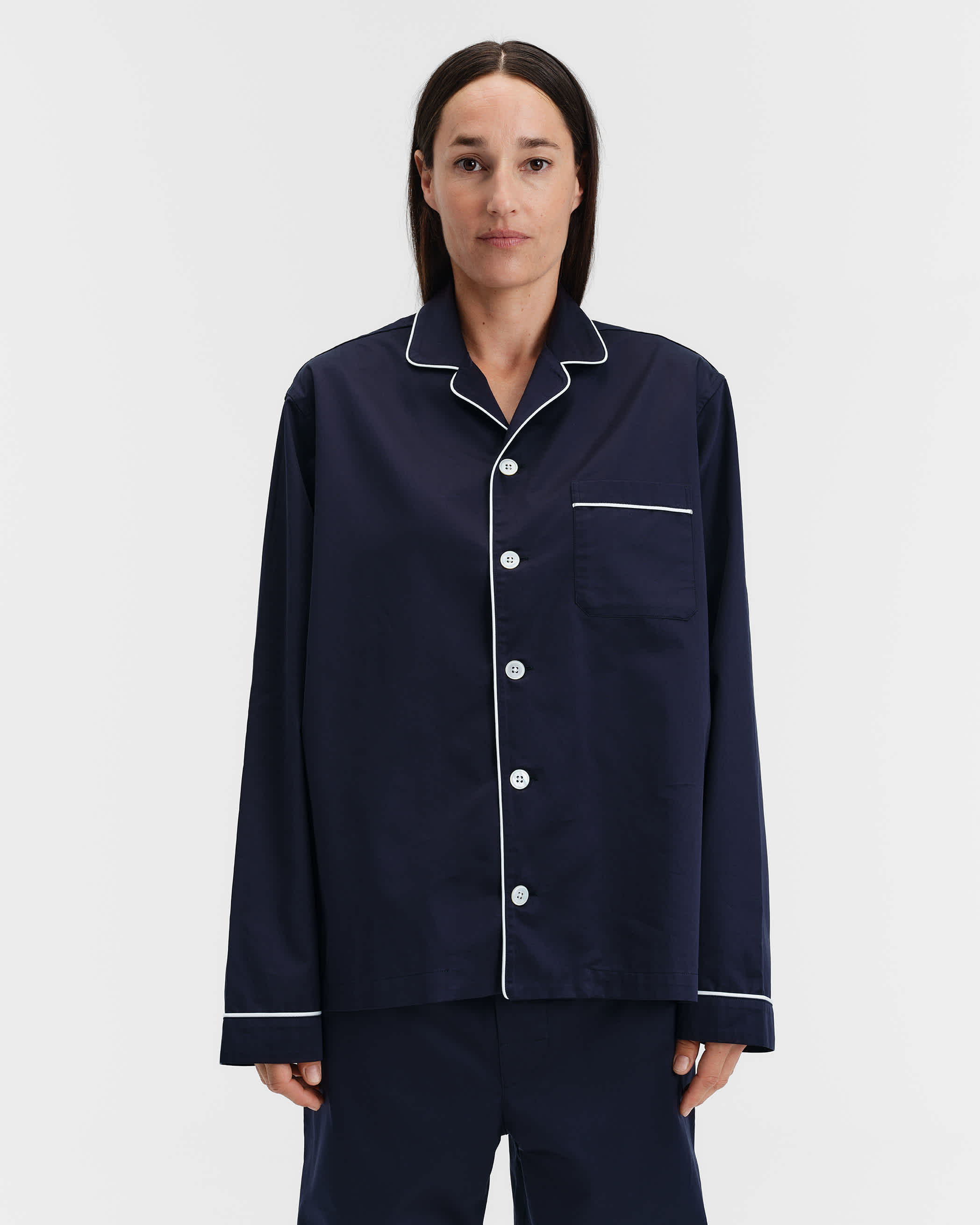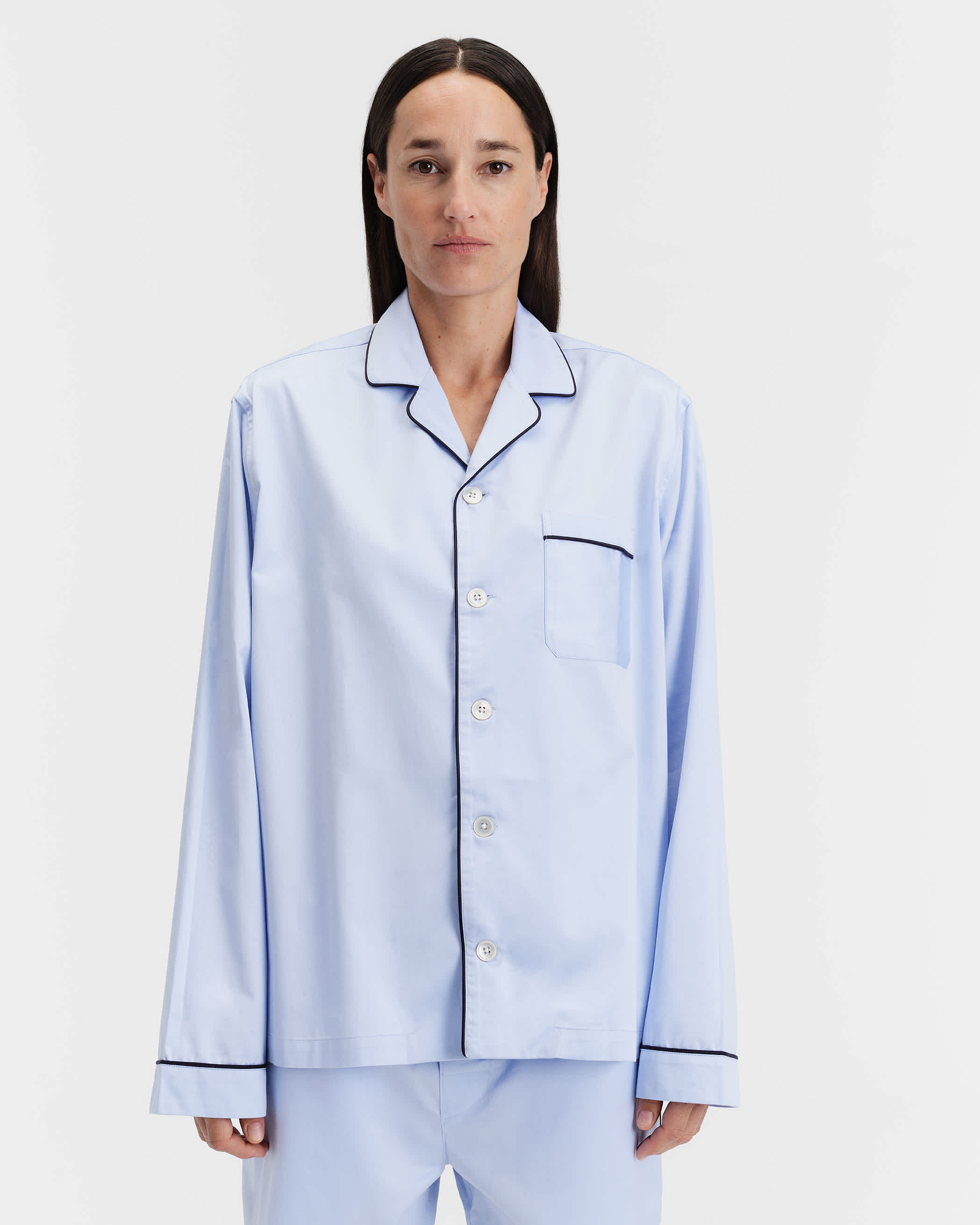 The sateen long-sleeved shirt is made to elevate the everyday. Crafted using soft, organic cotton in a midweight weave for a lustrous finish and silky hand feel. The classic silhouette features contrasting piping details.