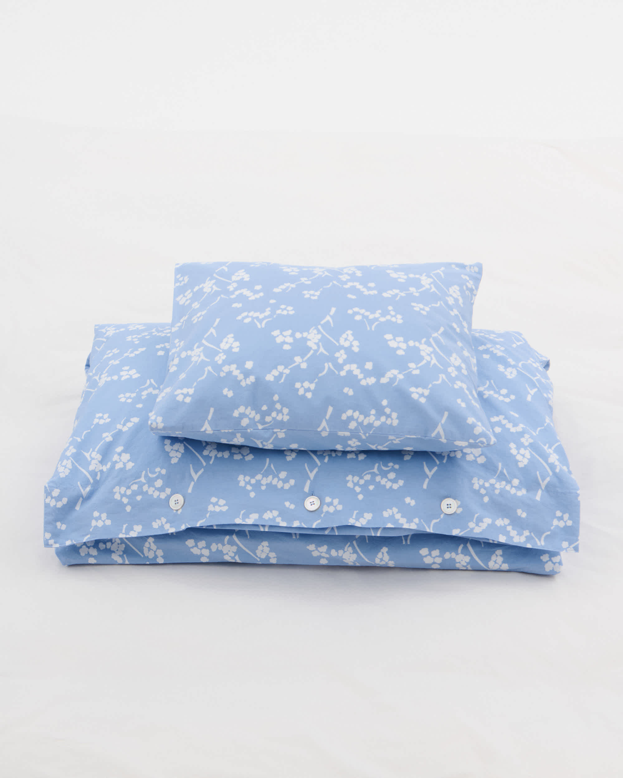 – Kirsikankukka Blue – Aino Aalto’s Kirsikankukka pattern in warm white on a clear blue base.